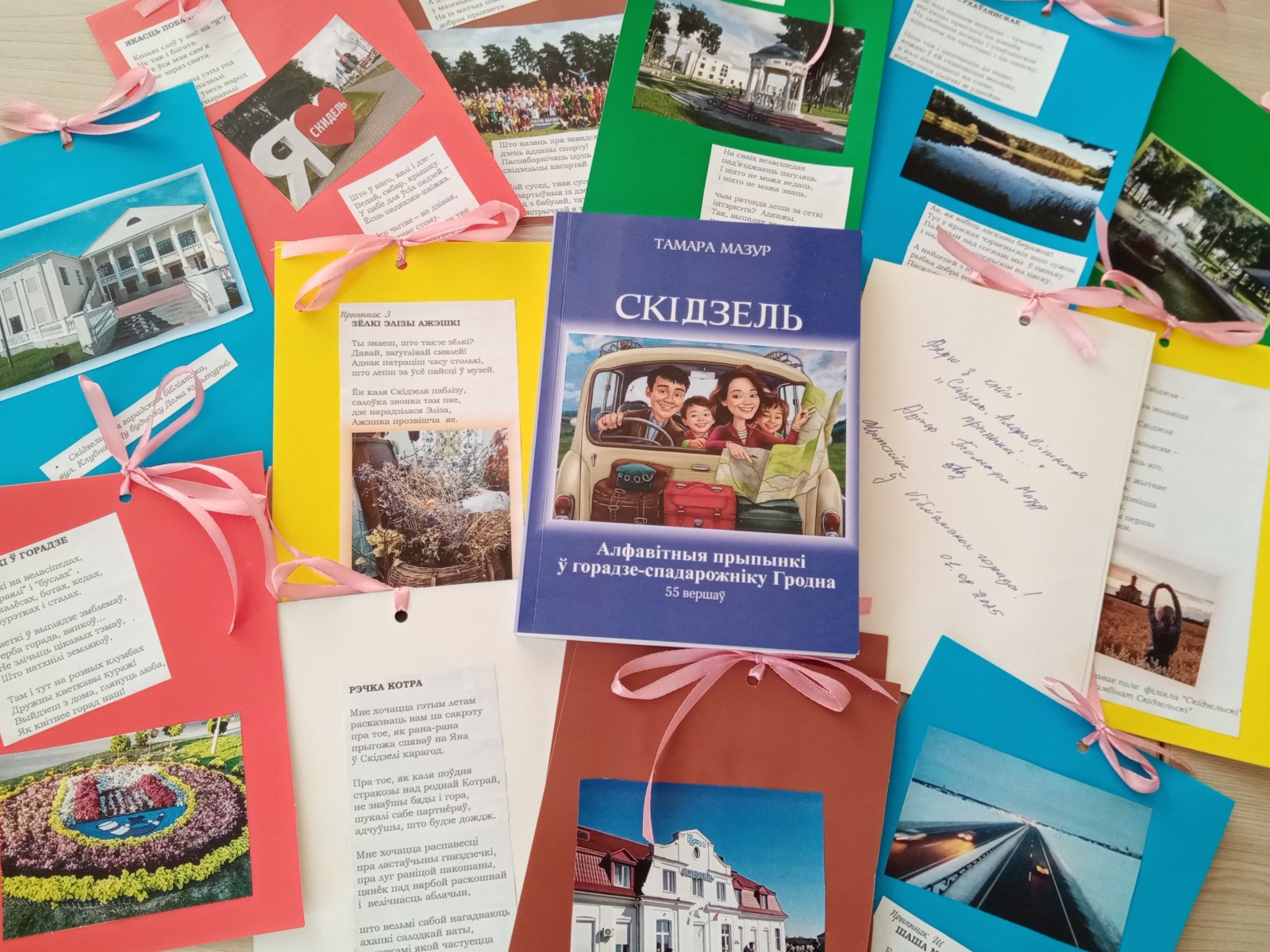 Специально для традиционного «Праздника цветов», который прошел в начале августа, библиотекарь изготовила открытки с фотографиями достопримечательностей и стихотворениями, вошедшими в ее новую, десятую по счету книгу, под названием «Скідзель. Алфавітныя прыпынкі ў горадзе спадарожніку Гродна».