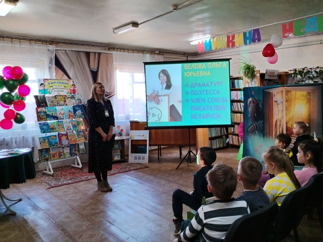 В рамках Недели детской и юношеской книги в филиале «Детская библиотека» для учащихся ГУО «Средняя школа № 1 г. Быхова» прошла творческая встреча «Весь мир большой от А до Я откроет книжная страна!» с членом Союза писателей Беларуси, поэтессой и драматургом Ольгой Беловой.
